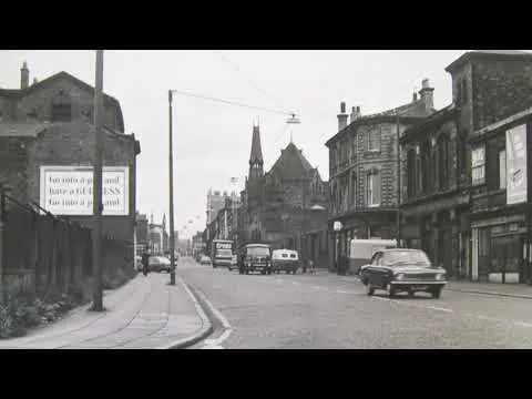 Colin: "Virtually every corner had a pub on it." Interviewer: "Do any spring to mind?" Colin (consults a photograph of the area): "There was a big pub here and that was a Walkers (points to ph...